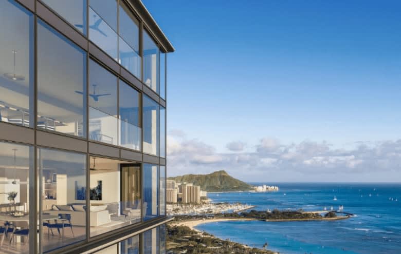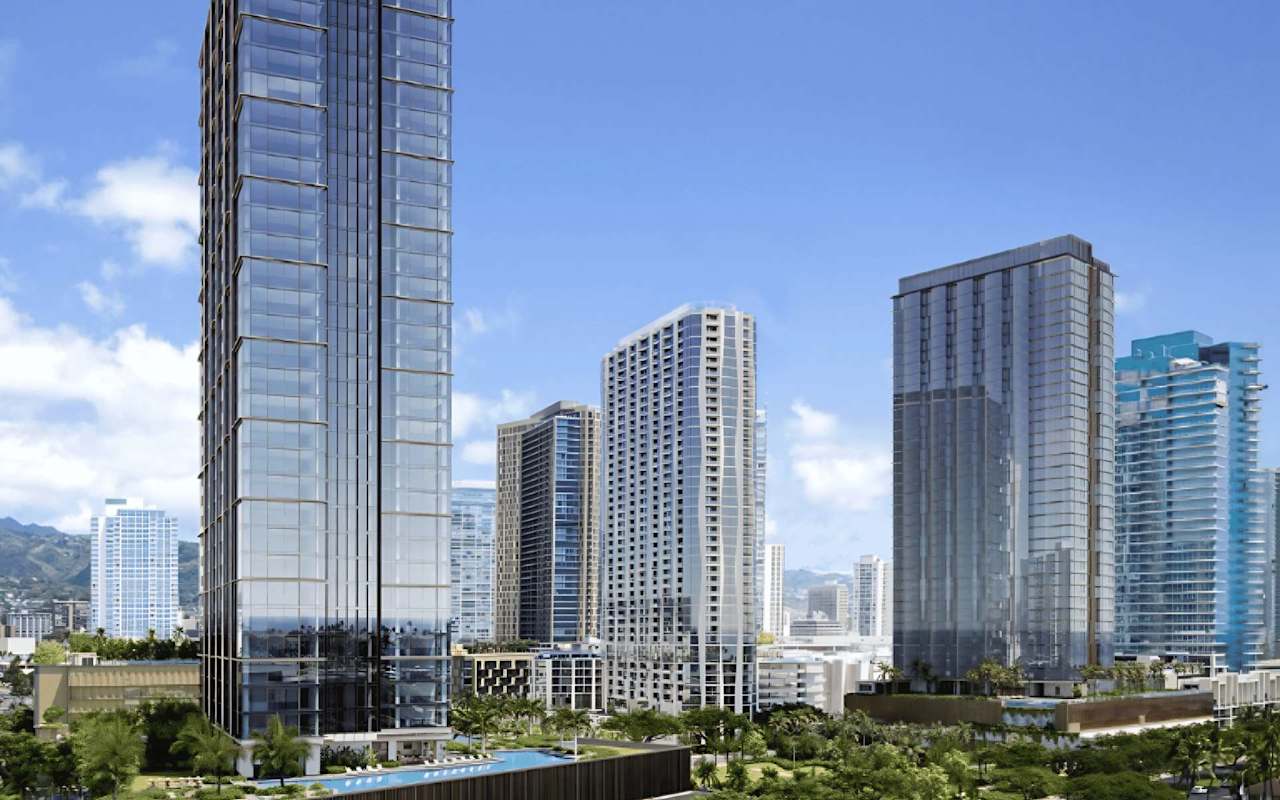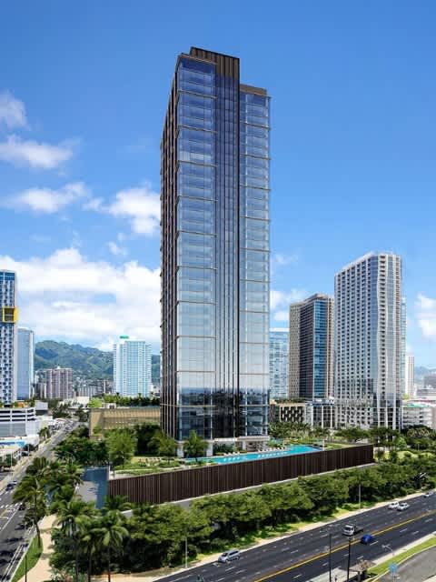 Kalae is an ultra-luxury front-row building anticipated to become a new addition in Ward Village by 2026. Kalae means “South Point”. Shimmering with light reflected from the Pacific, Kalae was positioned to maximize exposure to the mesmerizing landscapes and ocean vistas along O‘ahu’s southern shore. The inspiration behind this project came from early Hawaiian architecture and design; think, Shangri La, The Halekulani Hotel, and The Honolulu Museum of Art. Kalae is the creation of a strong design team: Ben Wrigley as the Architect, Nicole Hollis as the Interior designer, and Don Vita as the Landscape architect.
