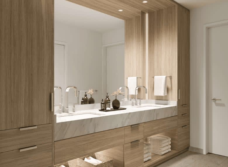 This ultra luxury front row building provides a perfect balance between resort-style living and the tranquility of a tropical oasis. The two swimming pools—both a resort-style and a fitness pool—along with the spa, sauna, and locker rooms, ensure that wellness and relaxation are at the forefront of the experience. The fitness studio and training room cater to active lifestyles, while the private dining room and BBQ area with a pizza oven offer great spaces for hosting gatherings and socializing.