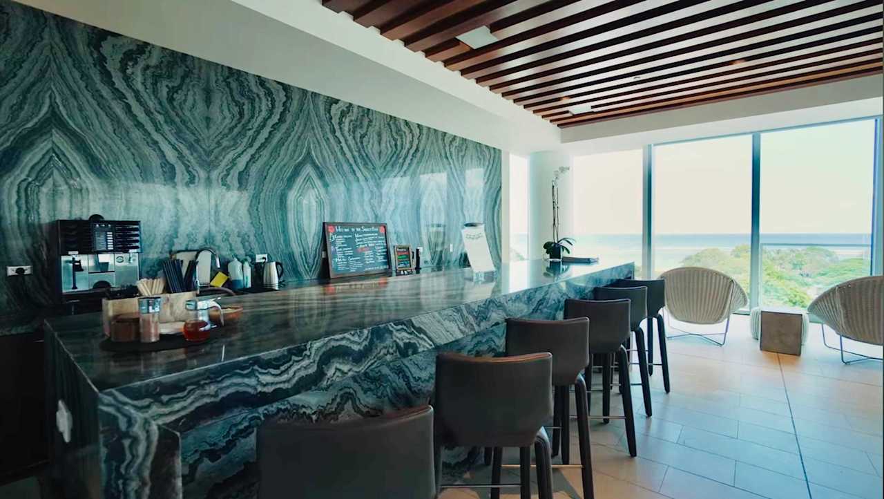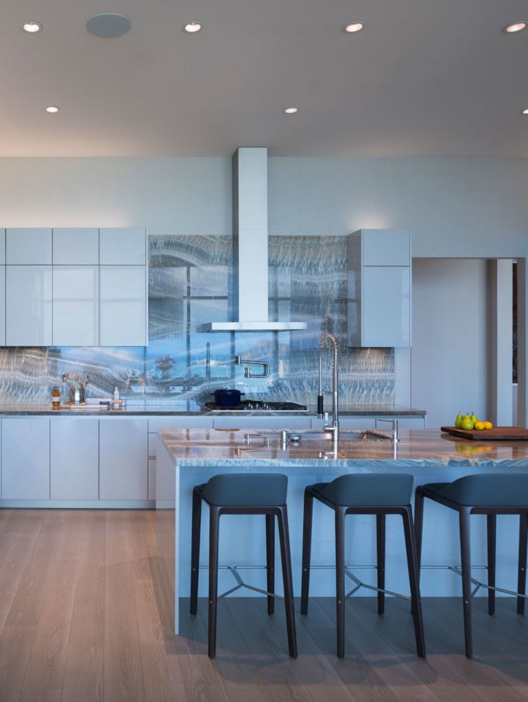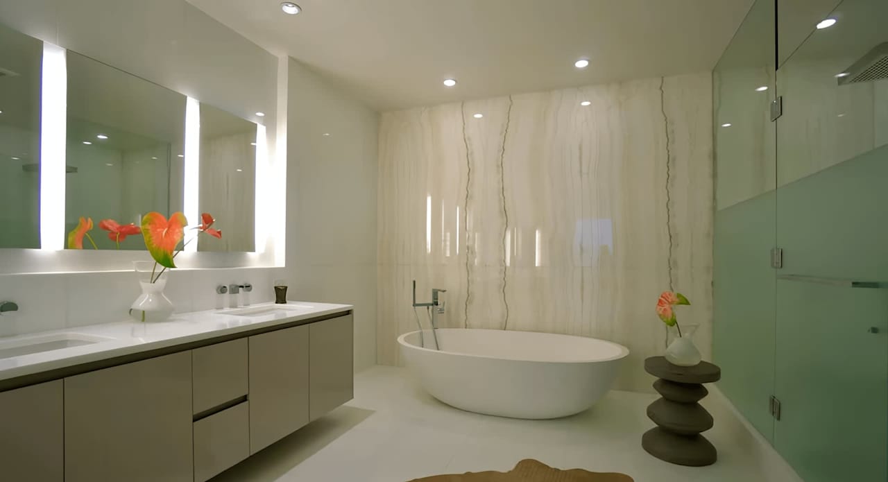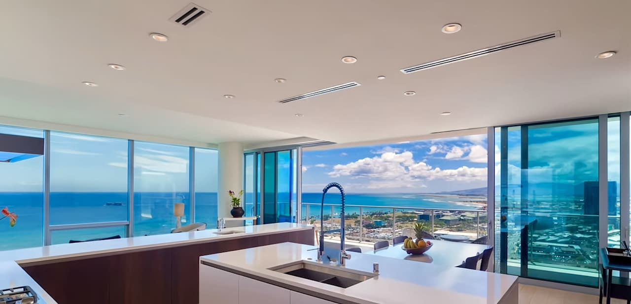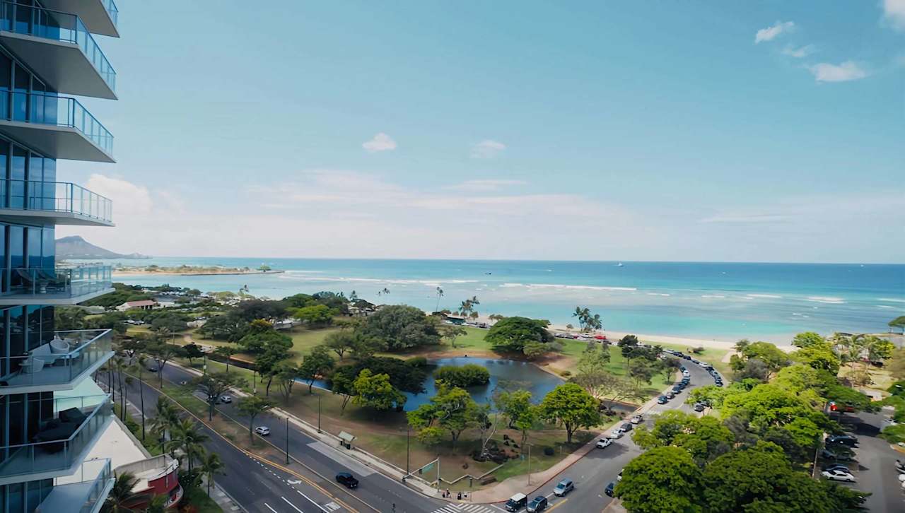 Rising 36 stories, Waiea comprises 174 residences, including 10 villas, 12 penthouses, and two grand penthouses. Each unit features floor-to-ceiling windows and spacious lanais, offering panoramic views of the Pacific Ocean, Ala Moana Beach Park, and the Honolulu skyline. Interiors are adorned with high-end finishes, such as European cabinetry, Miele appliances, and polished-quartz composite countertops.