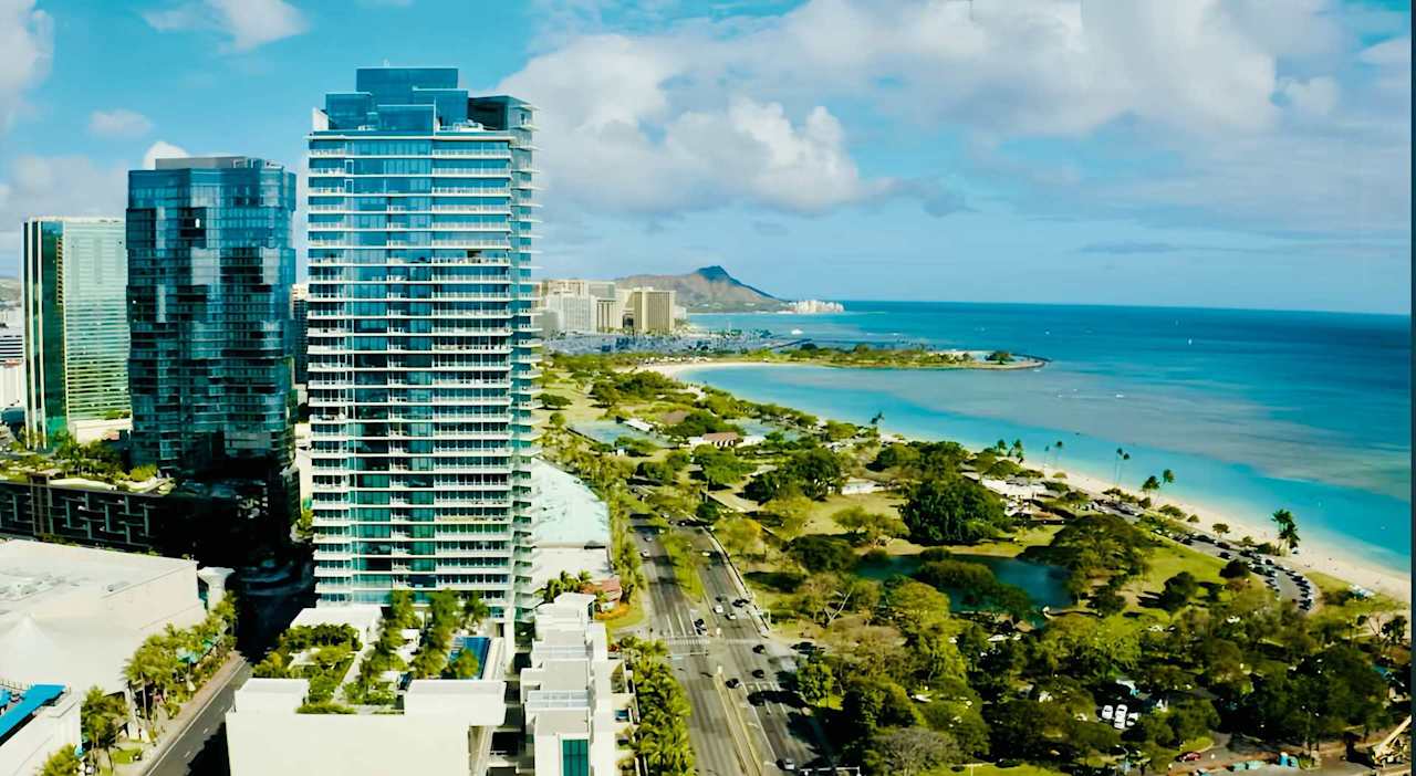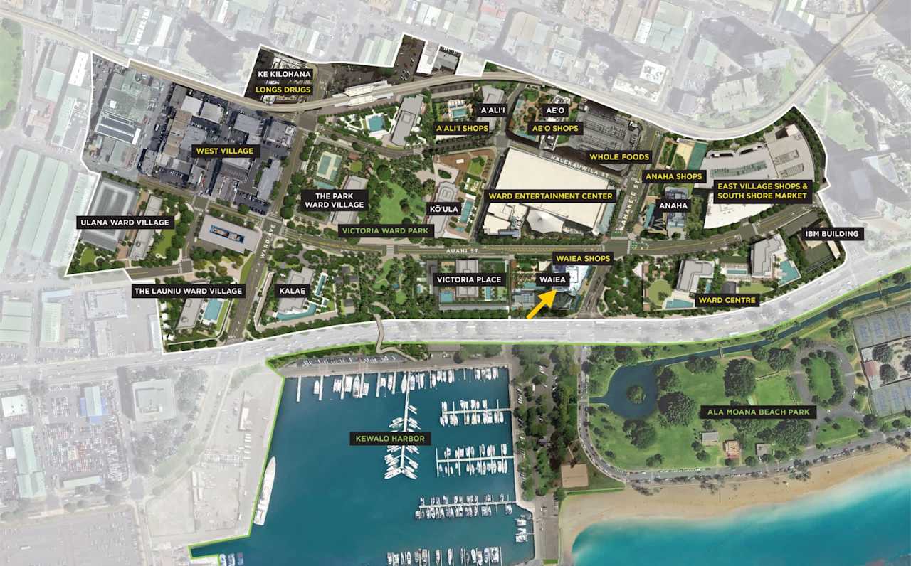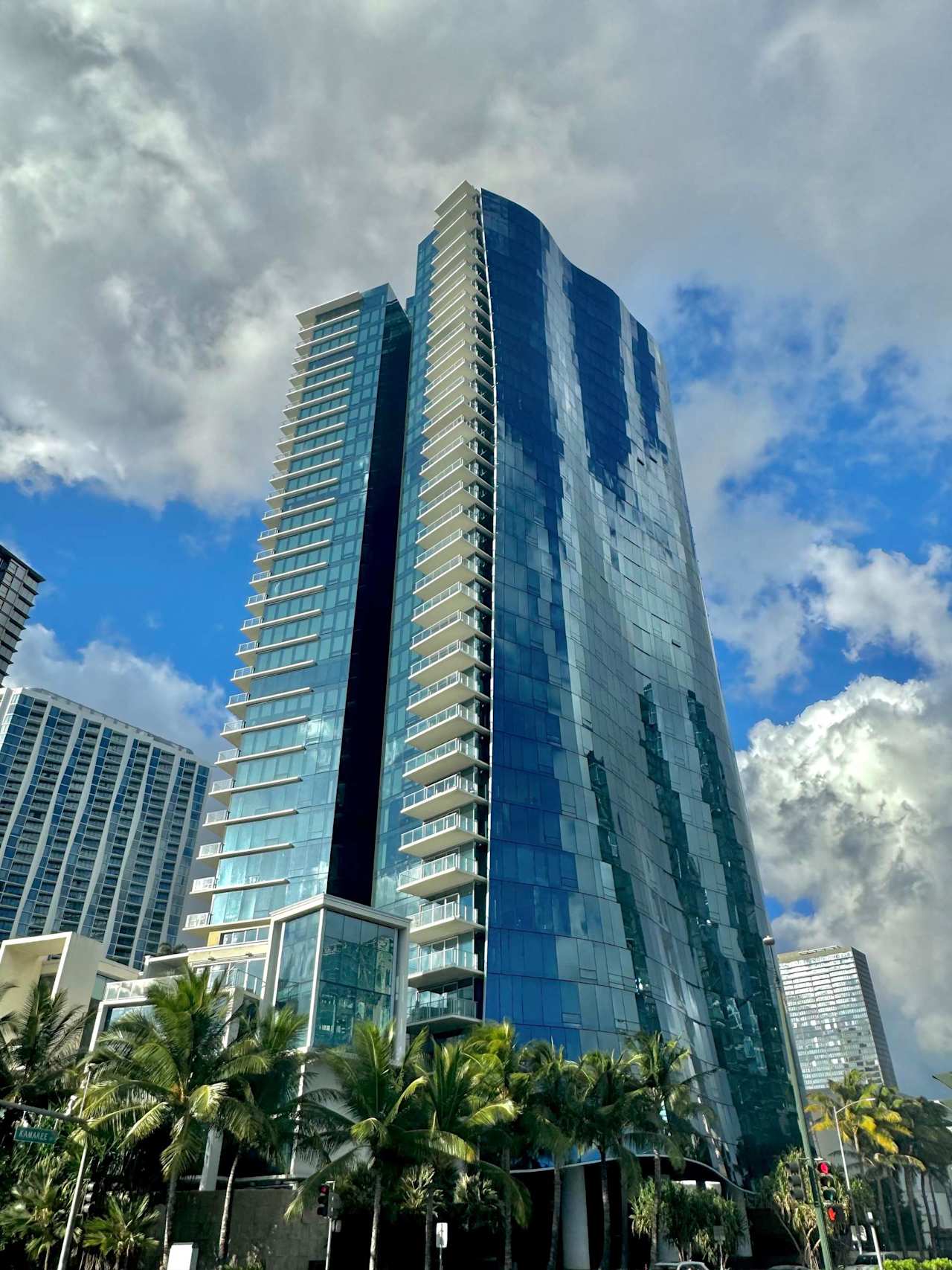 Waiea, meaning "water of life" in Hawaiian, stands as the inaugural ultra-luxury residential tower in Ward Village, completed in December 2016. Designed by renowned architect James K.M. Cheng, its distinctive glass façade, composed of over 1,200 customized pieces, evokes the fluidity of water, symbolizing Hawaii's deep connection to the ocean and honors the life-giving role of water.