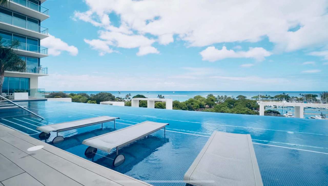 Residents enjoy an array of amenities, including an infinity-edge pool overlooking theocean, a state-of-the-art fitness center with a yoga studio, and resort-style locker rooms equipped with steam, sauna, and treatment rooms. The building also features a private theater, library, indoor golf simulator, and multiple dining and entertaining spaces. Its completion marked a significant milestone in Ward Village's transformation into a vibrant, walkable community, setting a new standard for luxury living in Honolulu.